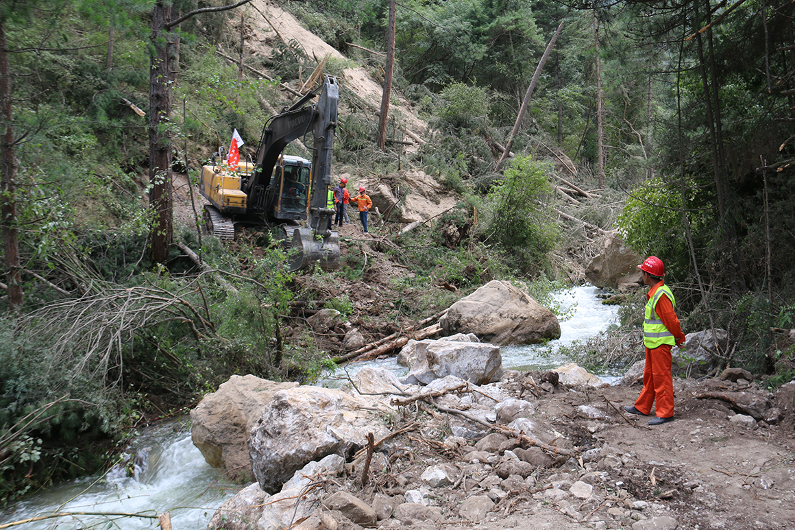 8月12日上午,四川pg麻将胡了app官网抢险突击队卖力清理省道S301桩号K83处跨方的挖机、装载机等大型设备,在专职宁静哨的指挥下,已将地动造成的数千方垮塌体全部清除。与此同时,两处钢棚架焊接加工点在经过24小时不间断紧张加工后,已焊接加工完成7个单位,共计24米。